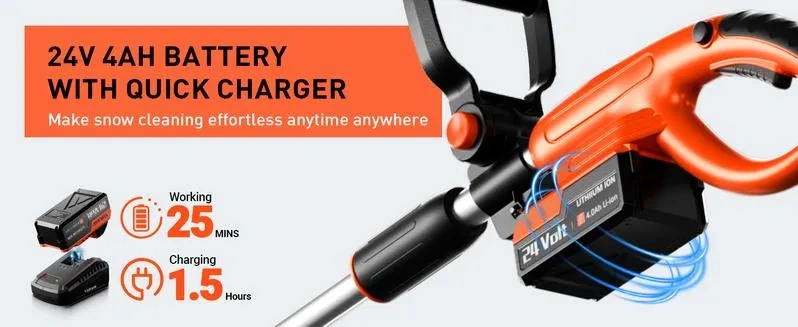Cordless Snow Shovel 24V 13-Inch 4-Ah Battery Snow Blower with Directional Plate Adjustable Front Handle Quick Charger Included